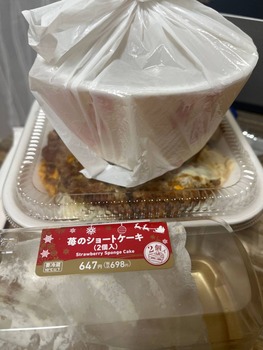 ラストにケーキ羨んでるやつおるけどこれ25日のファミマケーキだから半額で売ってたぞ