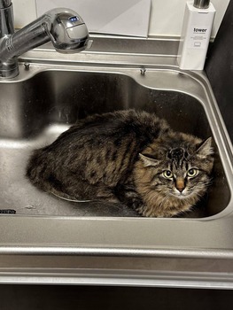 2枚目はシンクの中で水に浸かってるように見えるけど、平気な猫なのかな