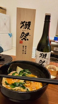 いいじゃん獺祭にモツ鍋