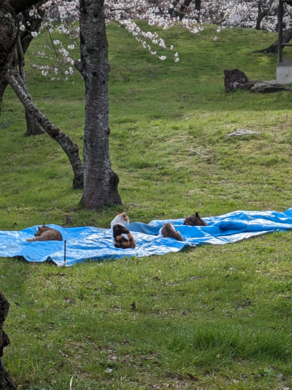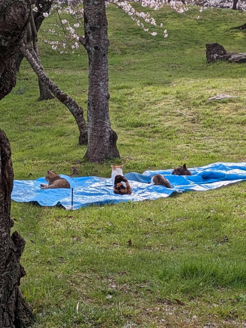 猫がブルーシート敷いて花見してるんだがwww(※画像あり)