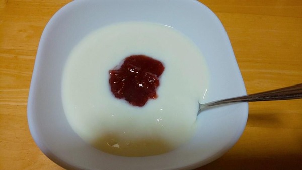 買ってきたヨーグルトに手作りイチゴジャムのせただけです