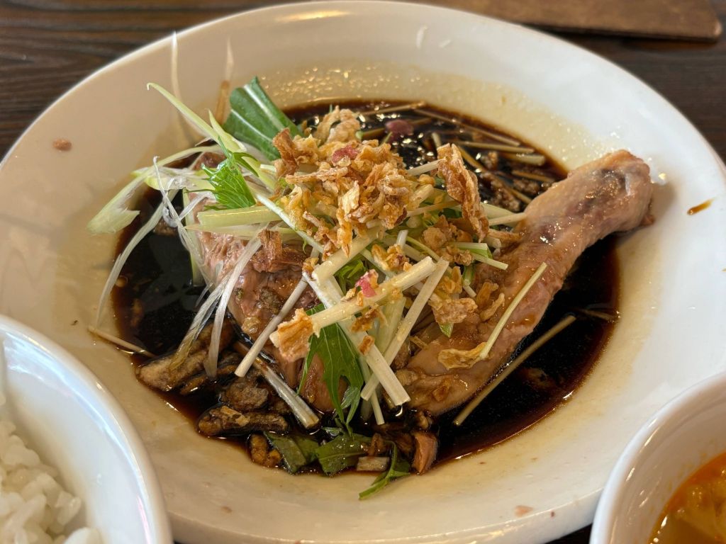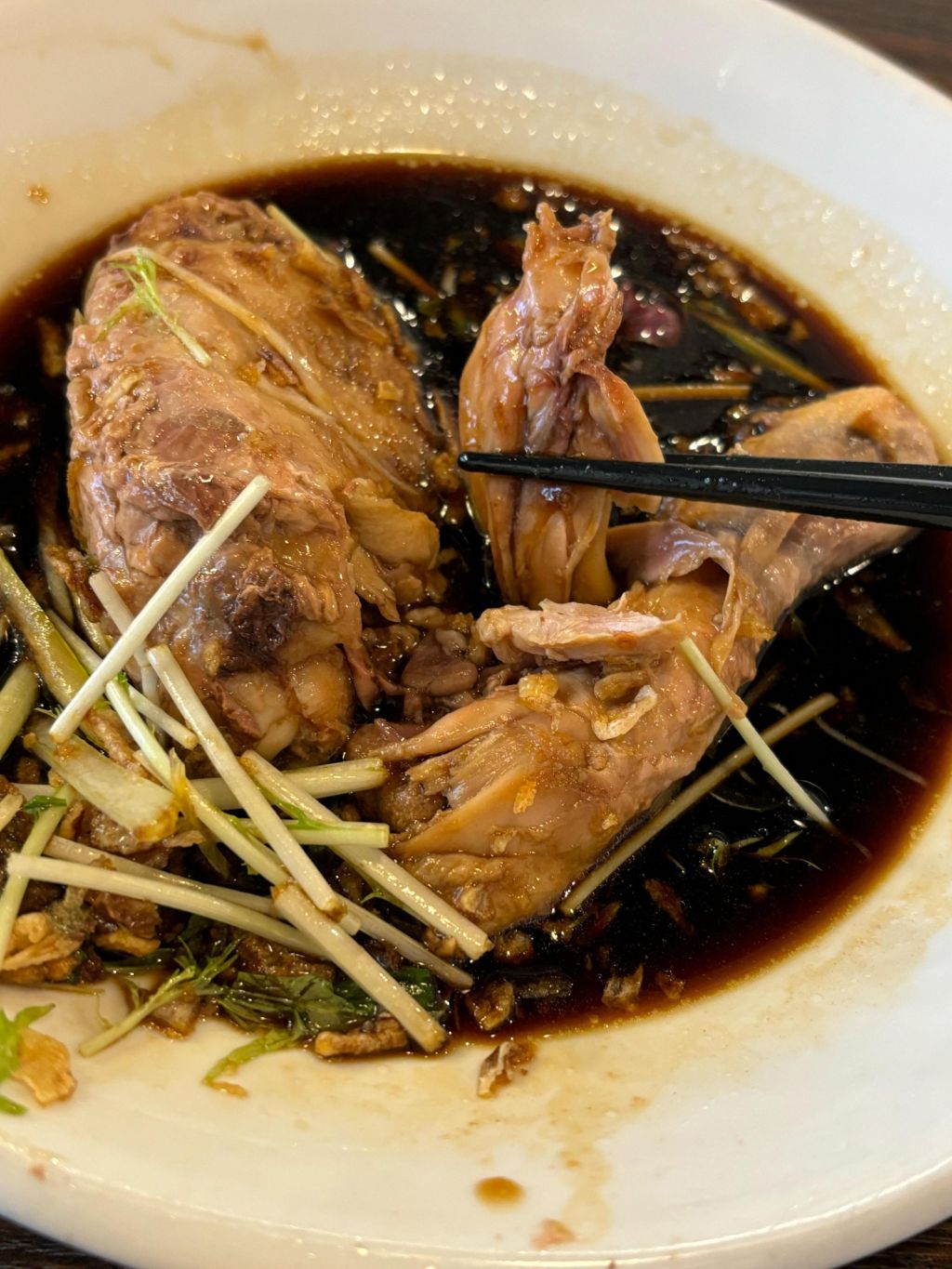(´・ω・`)あぁ書いてあったね蒸し鶏ネギ醤油か!