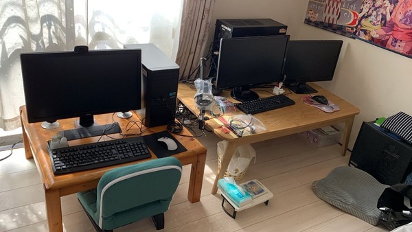こんなもん、テーブル下の奥に入れとけば上を広く使えるのに。