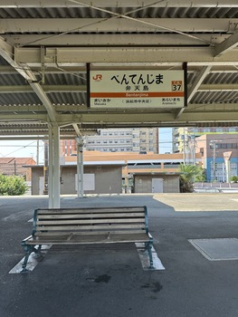蒲郡通過。近くにある竹島水族館も面白そう。