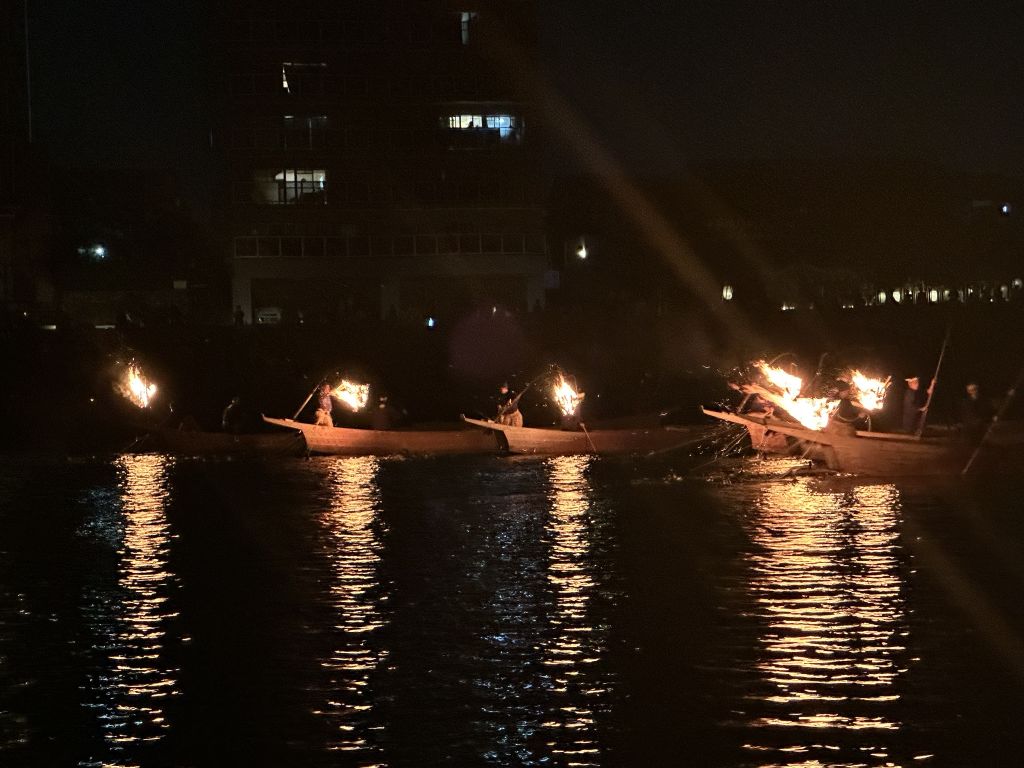 今鵜飼見に来とるやで。めちゃくちゃ迫力あって面白いわ。