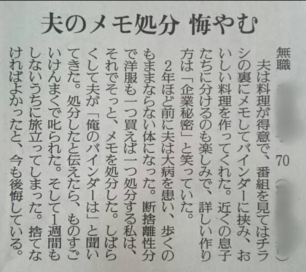 夫が病気になったから夫の大切なメモを処分した
