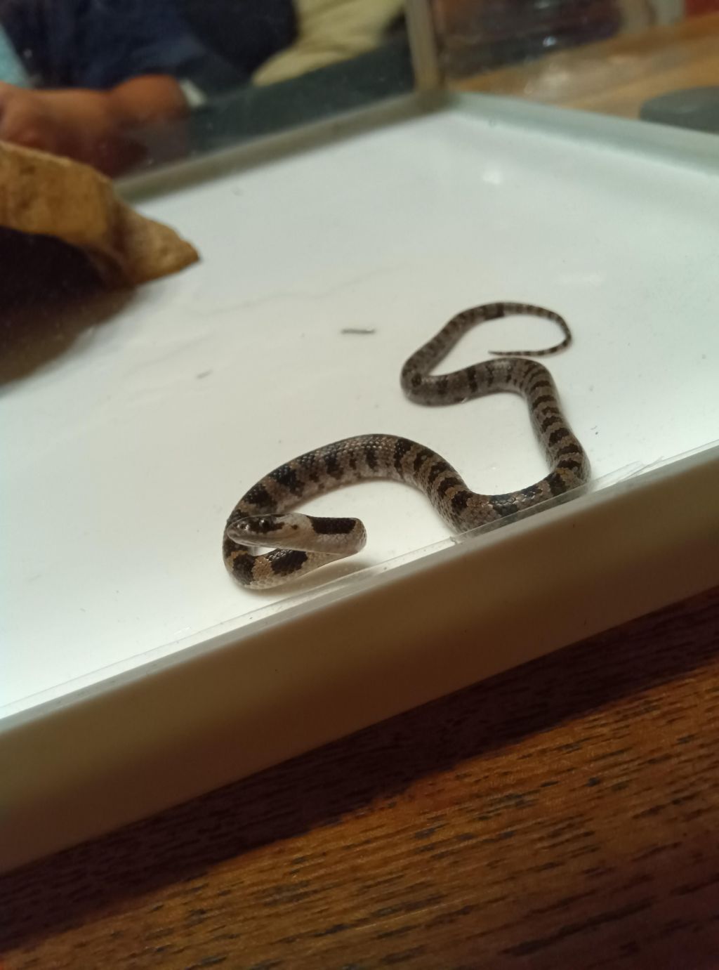 幼蛇やからあんまベタベタ触って弱らせないようにな