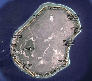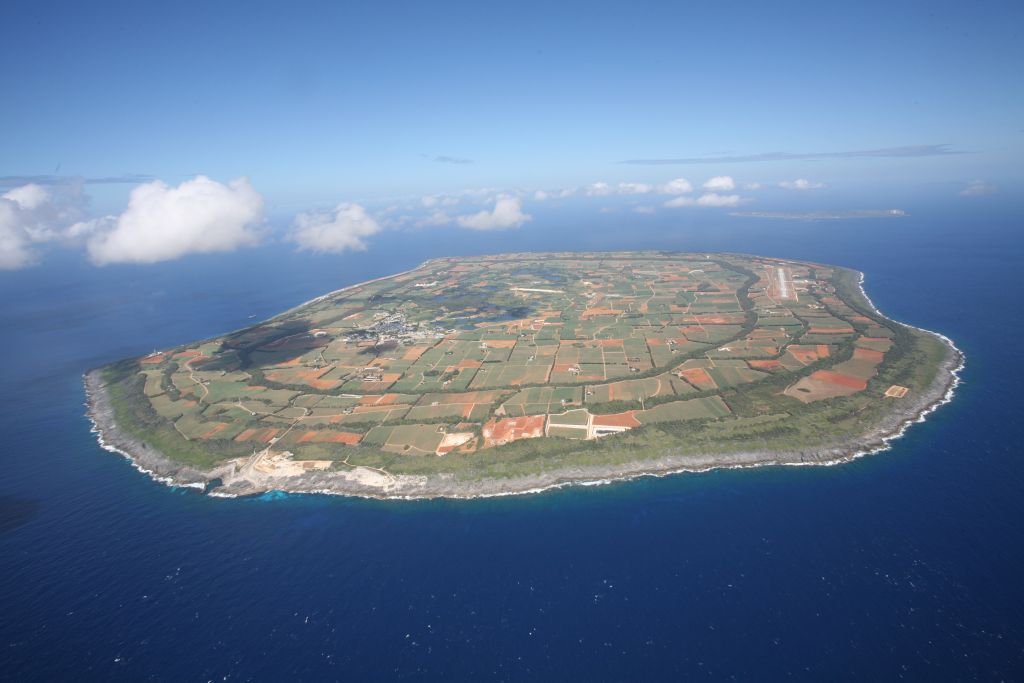 サンゴ礁が隆起した島で周りの部分が一番高くって真ん中が凹んでる