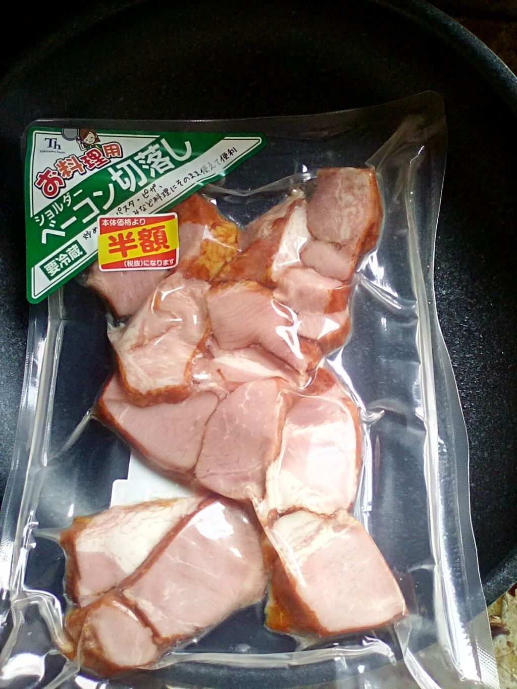 汚いこととベーコンなこと以外は、これで袋の裏面に書いてある作り方のほぼまんまやろ
