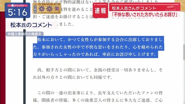 松本人志自身のコメントがどこにもねえし記名もねえ