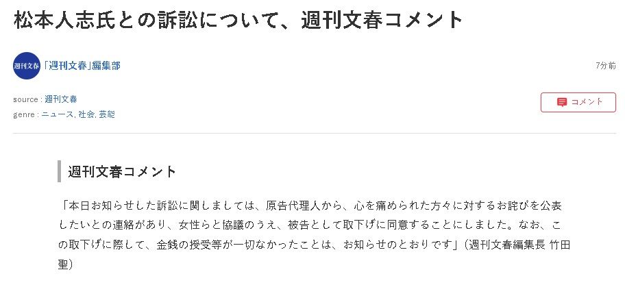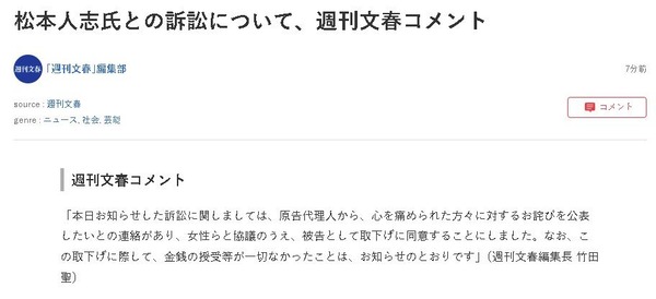 松本だけじゃなくて女も文春も何普通に和解してんだ