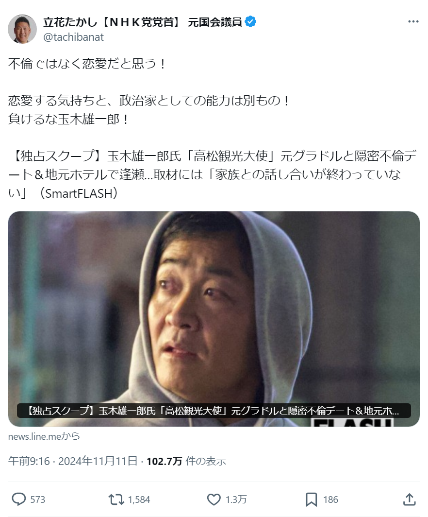 国民民主の玉木さん、国民を賃上げする前に、不倫して自分のタマキンをチン上げしてしまうwww