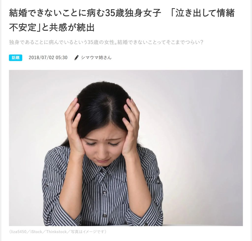 >「35歳独身女性は思ってるより焦ってるし苦しんでる」炎上