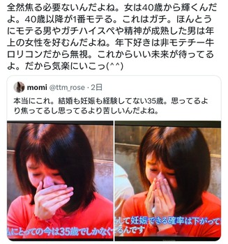 女さん「35歳独身女性は思ってるより焦ってるし苦しんでる」→炎上
