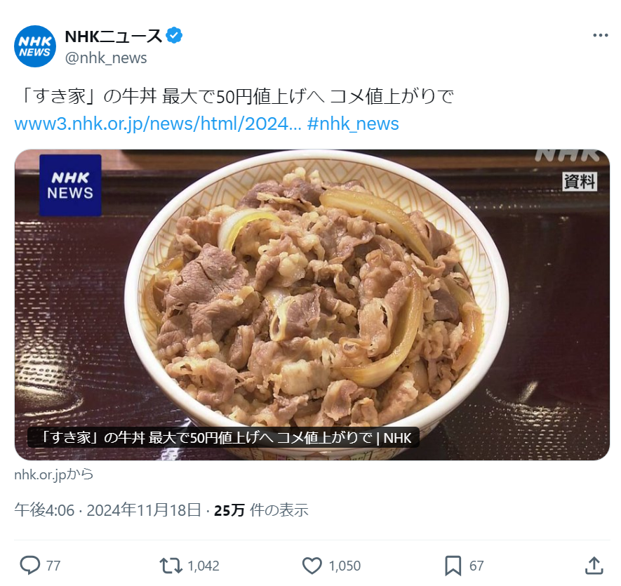 【大悲報】すき家、値上げ!