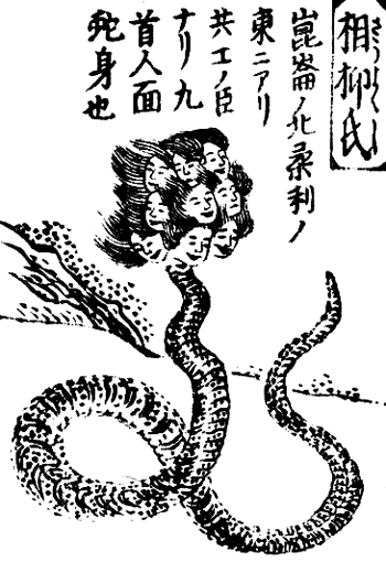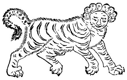 開明獣 人間の顔9個ついた虎