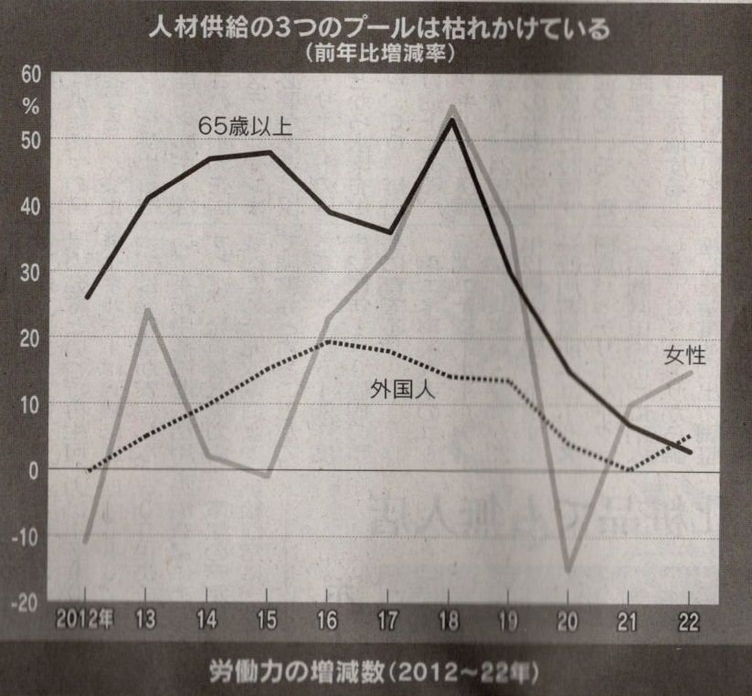 「働き手が減少して売り手市場になったところで大企業に賃上げを要求すればよかったのに、大企業の要望を容れて老人と女性と外国人で労働者を増やして買い手市場にするという逆のことをしてしまった」
