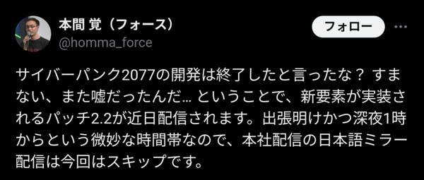 【12月10日25時内容予告】開発終了が宣言されていたサイバーパンク2077がまさかの新要素追加アップデートを予告!!!(※画像あり)