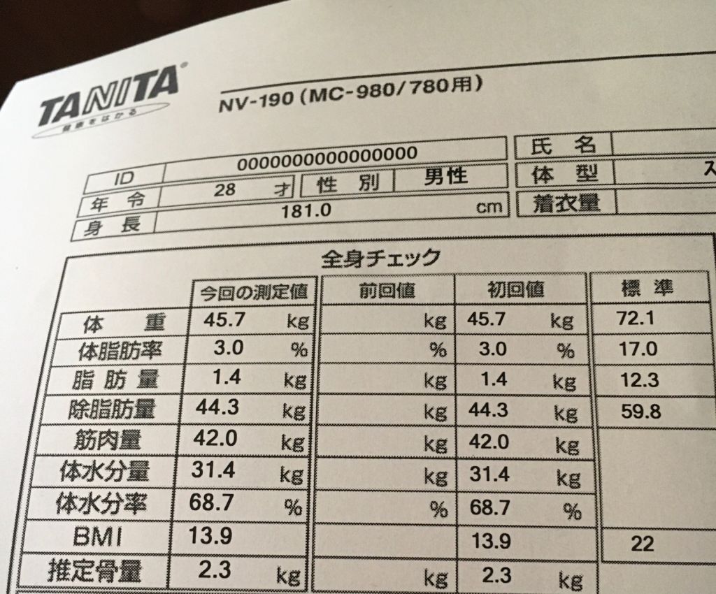 高校のときも180cmで52kgとかだったからずっとこんなかんじだな