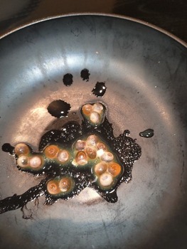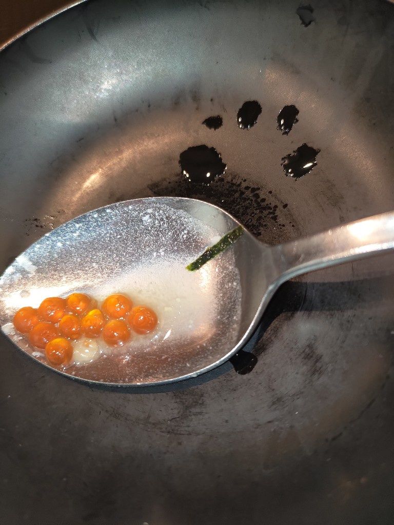 人工いくらはアルギン酸などの多糖類とサラダ油などの植物油でできているため熱湯につけても白くならない