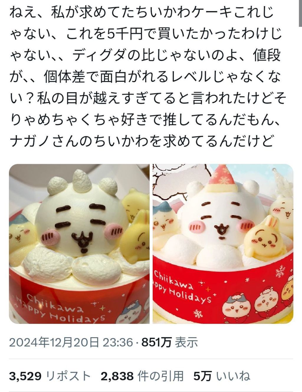 「こんなの"ちいかわ"じゃない!」セブンのちいかわケーキ(¥5000)が炎上(※画像あり)