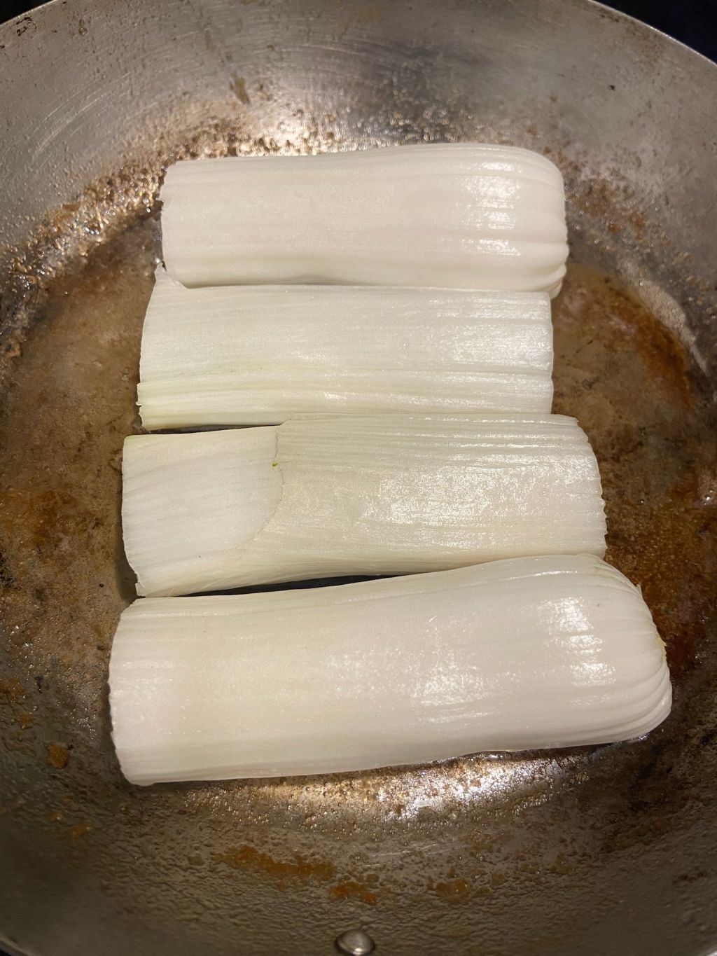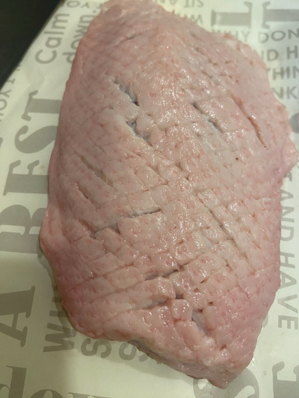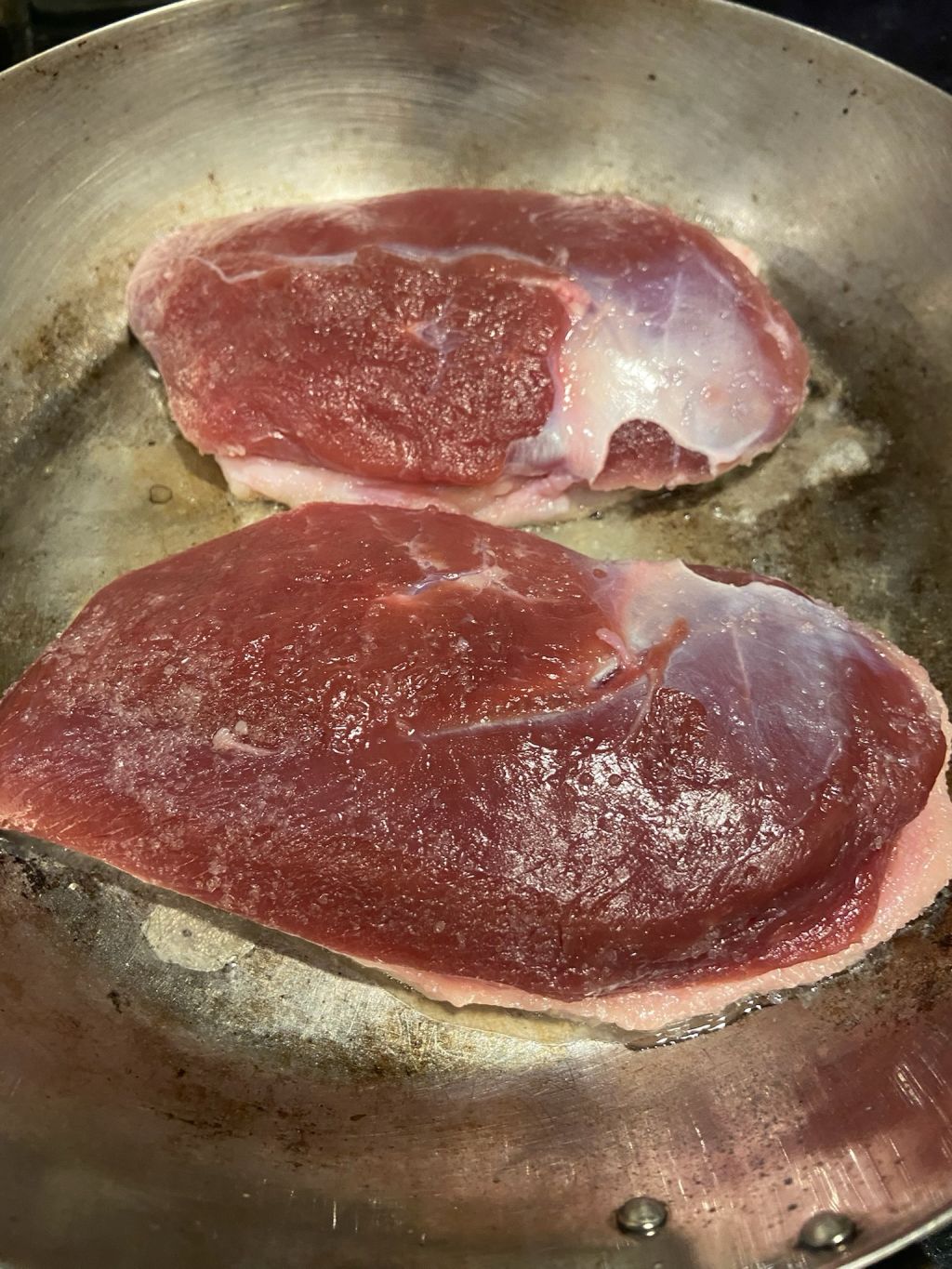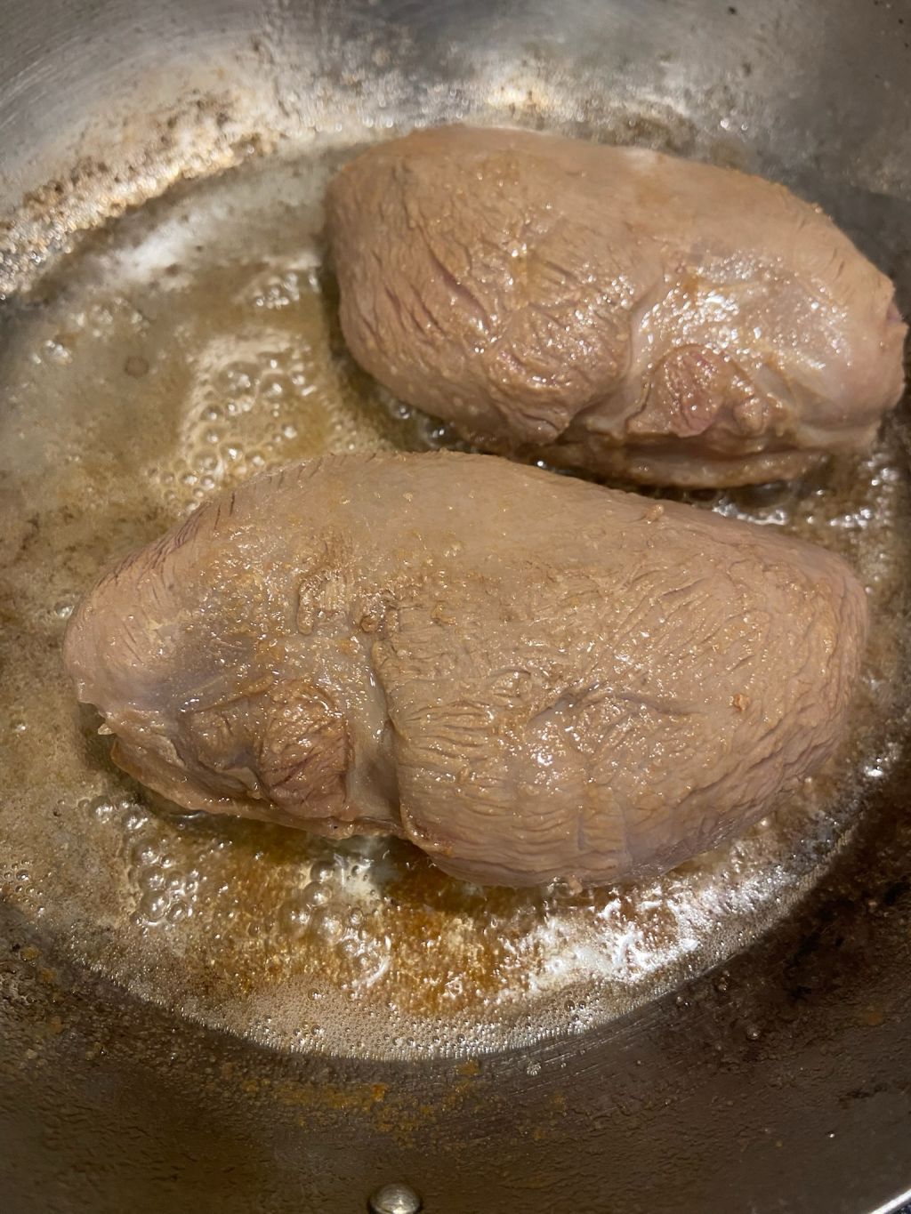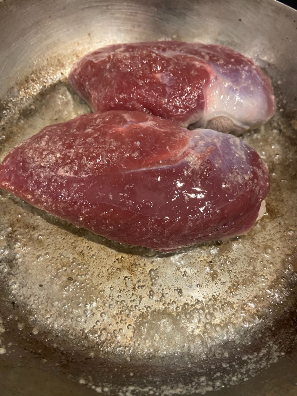 鴨の脂は常温で溶けてくるのでどんどん表面がギラついてきます