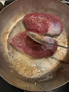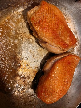 そして焼いてるとカモ独特の凄く芳醇な香りが空間を支配します
