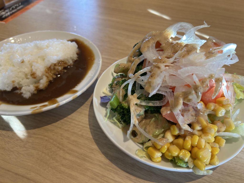 プレミアムセットならサラダ、カレー、ライス、スープ食べ放題や