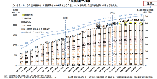 この調査は、介護保険制度が始まった2000年度から毎年度続けてきましたが、2020年代からは増加ペースが鈍化し、2023年度に初めて減少に転じました。