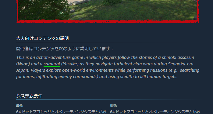 日本語設定のSteamのページにもまだしっかりsamuraiってあるぜ!