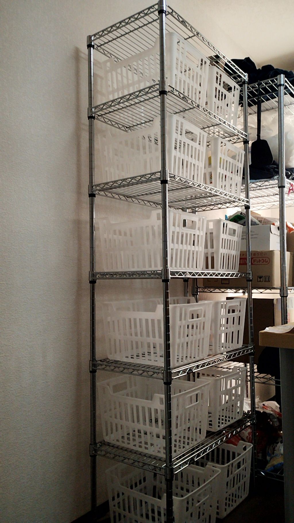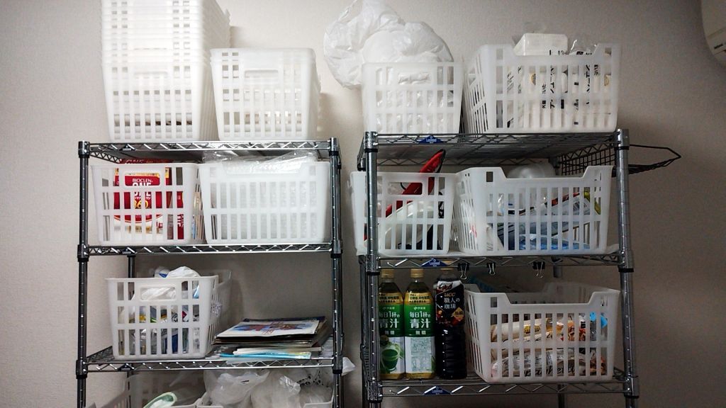 つーか空のカゴが並んでるってことは、まだたいして置くものないのにラックだけ大量に買ってるってことか。イカレてるわ