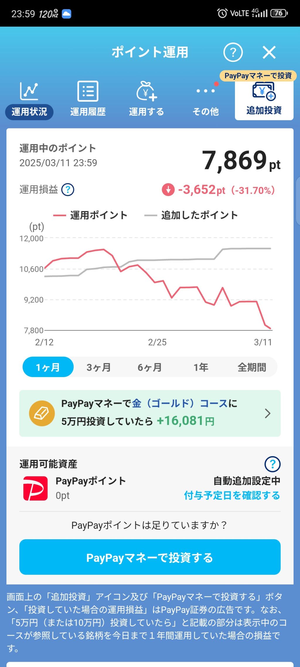 ぺいぺいのポイント運用で大損こいてる😠(※画像あり)