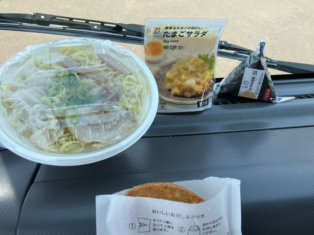 家から持ってったおにぎりとかプロテインバーを運転しながら食べるだけで