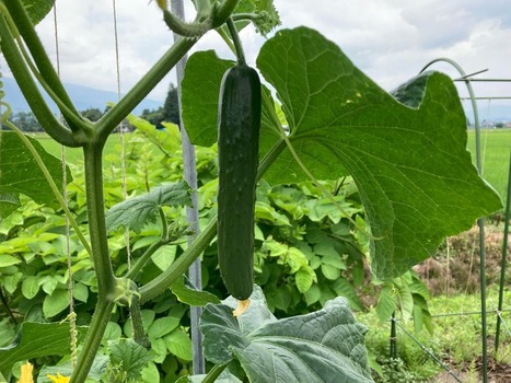 1人暮らしだからキュウリとトマト1本づつ育ててるけどキュウリがやたら採れるの楽しい