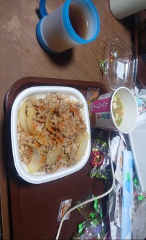 ワイはさっきコーンスープと食パンたべたよ