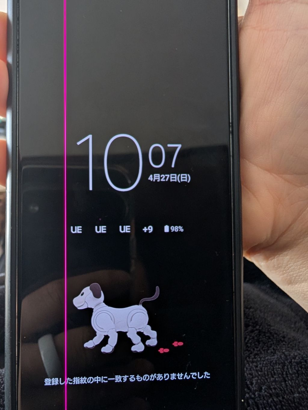 こんな線別にXperiaじゃなくても出るよ。有機ELに強い衝撃か内部に水が入ったかのどっちか。