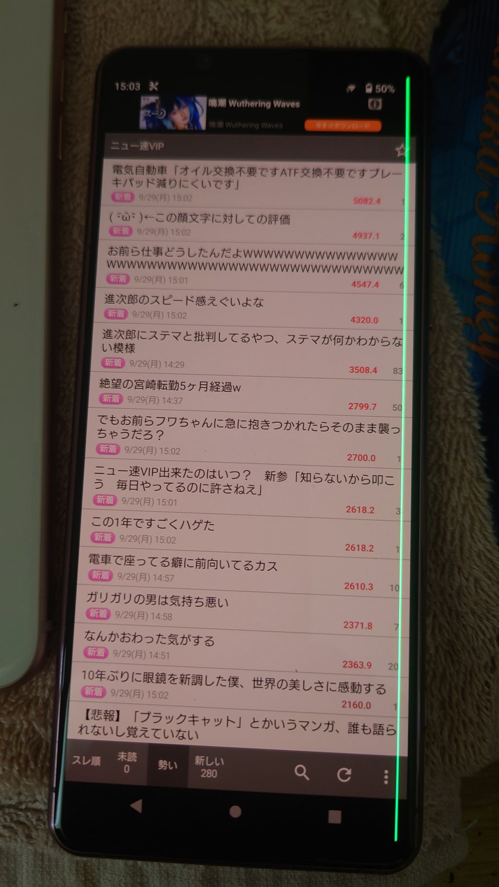 スマートフォン板のXperia5Ⅱスレで画面いっぱいに緑の線が入ってて何も読めないし見えない画像を見たことがあるんだけど