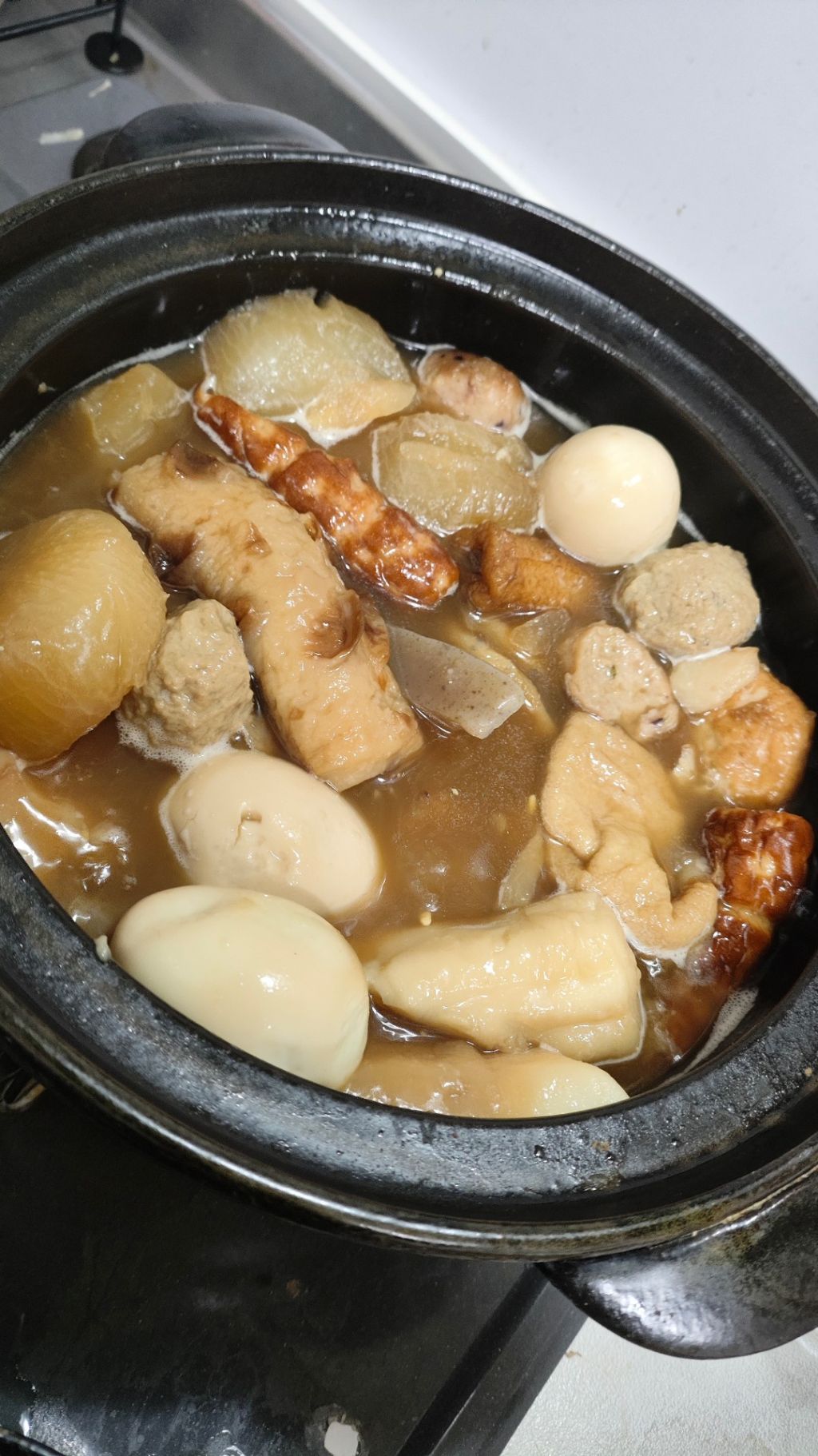 沸騰させないギリギリの火加減で煮込むと味も染み込みやすいし汁も濁らない美味いおでんになるけどな