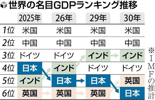 日本のGDP、26年にインド・30年はイギリスに抜かれる見通し…既にドイツに抜かれ4位に転落by 日本のGDP、26年にインド・30年はイギリスに抜かれる見通し…既にドイツに抜かれ4位に転落 - 読売新聞