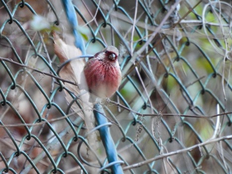 ベニマシコは11月頃、シベリア方面からやって来て、4月半ばまで見ることができる冬鳥です。