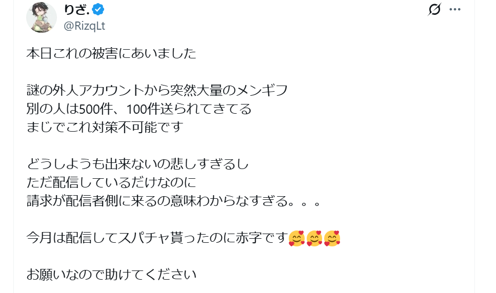 Youtubeメンバーシップギフトキャンセル攻撃で配信者に被害(※画像あり)