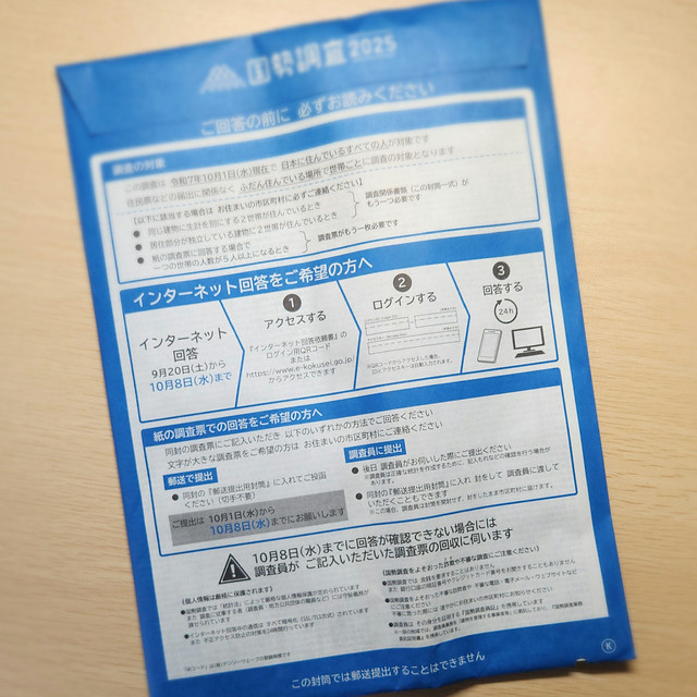 久しぶりに郵便受け開けたら国勢調査の封筒が入ってた