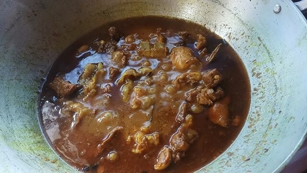 油で鶏肉を煮込んだ料理