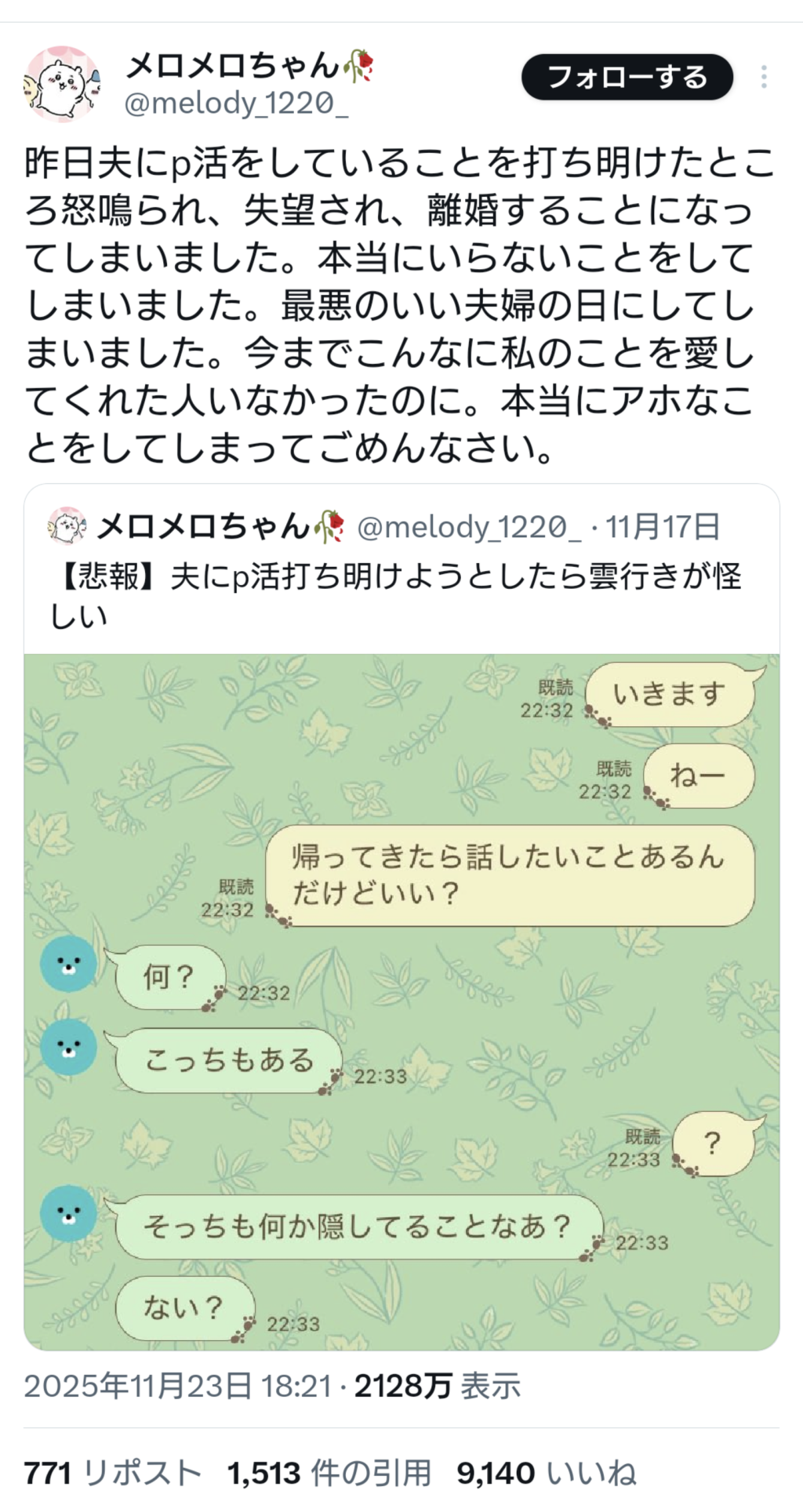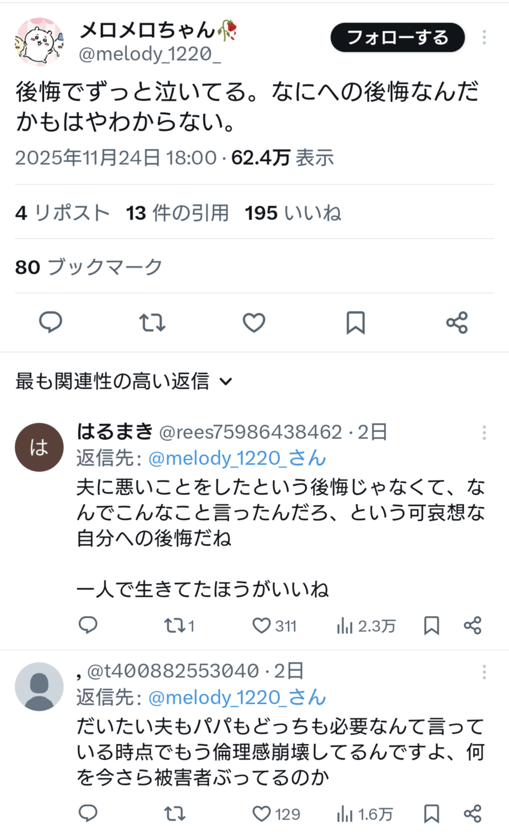 過去ポスでバカ正直になんでも書いてたからアカウント残ってたら旦那に有利になるのに残念だ