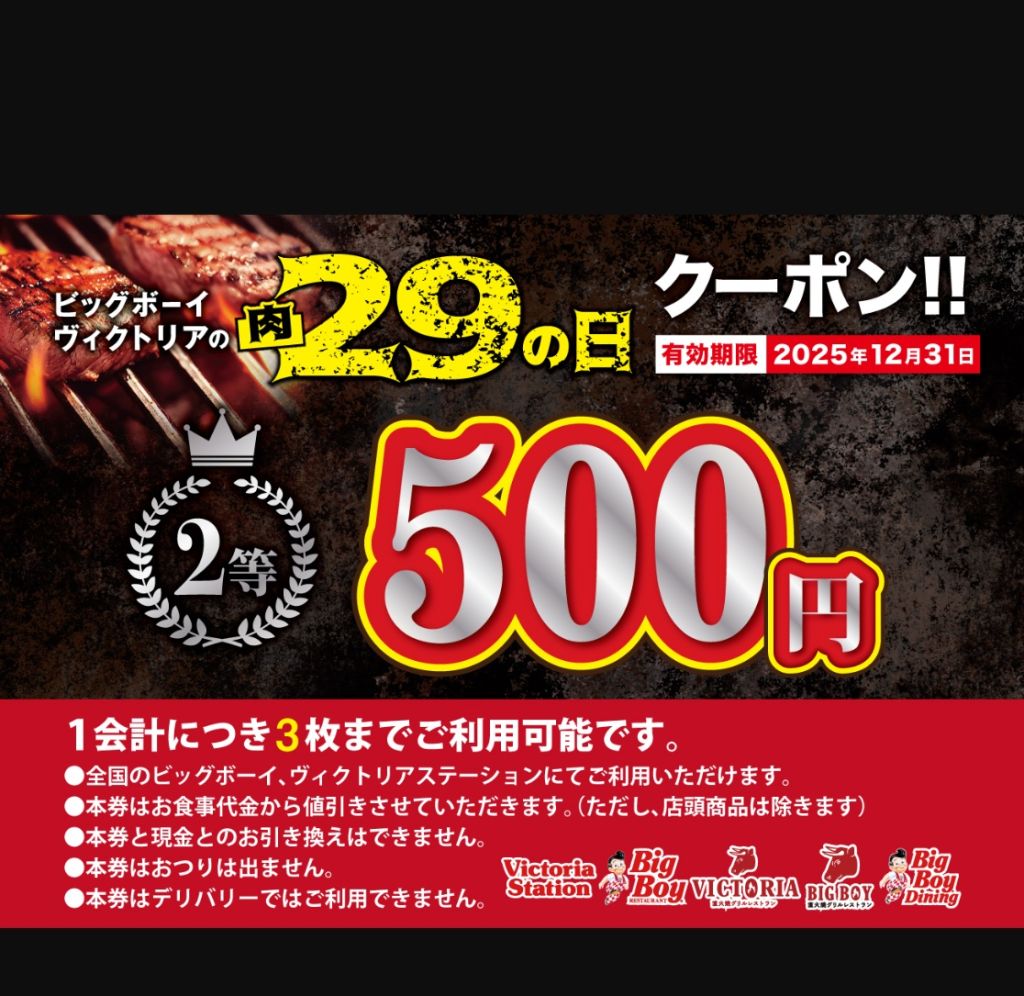 先週行ったらクーポンもらって、QR読み取ったら2等おめでとうございますってなった