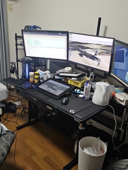 飯は液タブどかしてそこで食うしデスク一個で生活完結してるからな