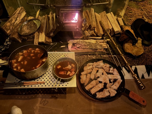 テント内で薪焚いて調理してるとかデカ過ぎるやろ