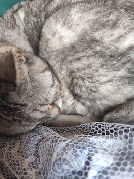 きれいなシルバータビーだな。うちのぬこも生きていれば冬は暖かだった。