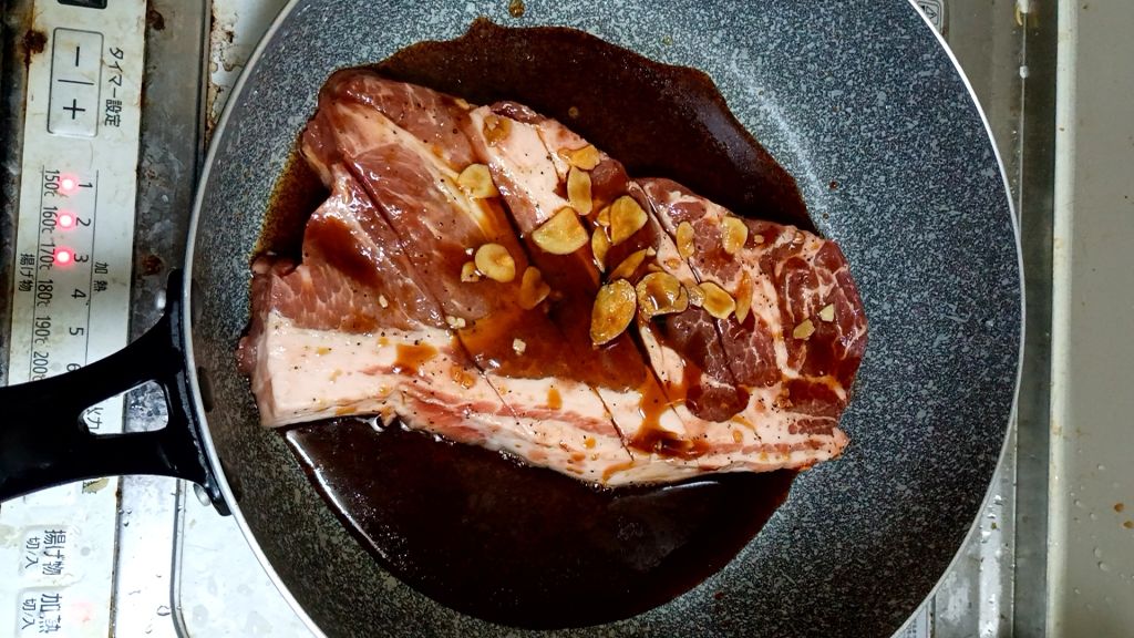 既に味付けされてる肉にヒタヒタになるほどの醤油