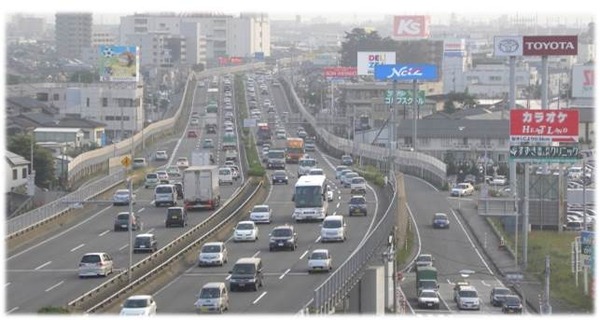 アメリカに比べると土地が狭いから、道路を広くするのも限界があんのよね。
